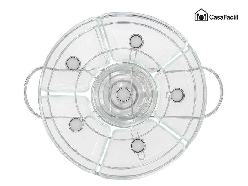 🔶 Estrutura giratória prática, que facilita o acesso aos alimentos em qualquer posição da mesa.